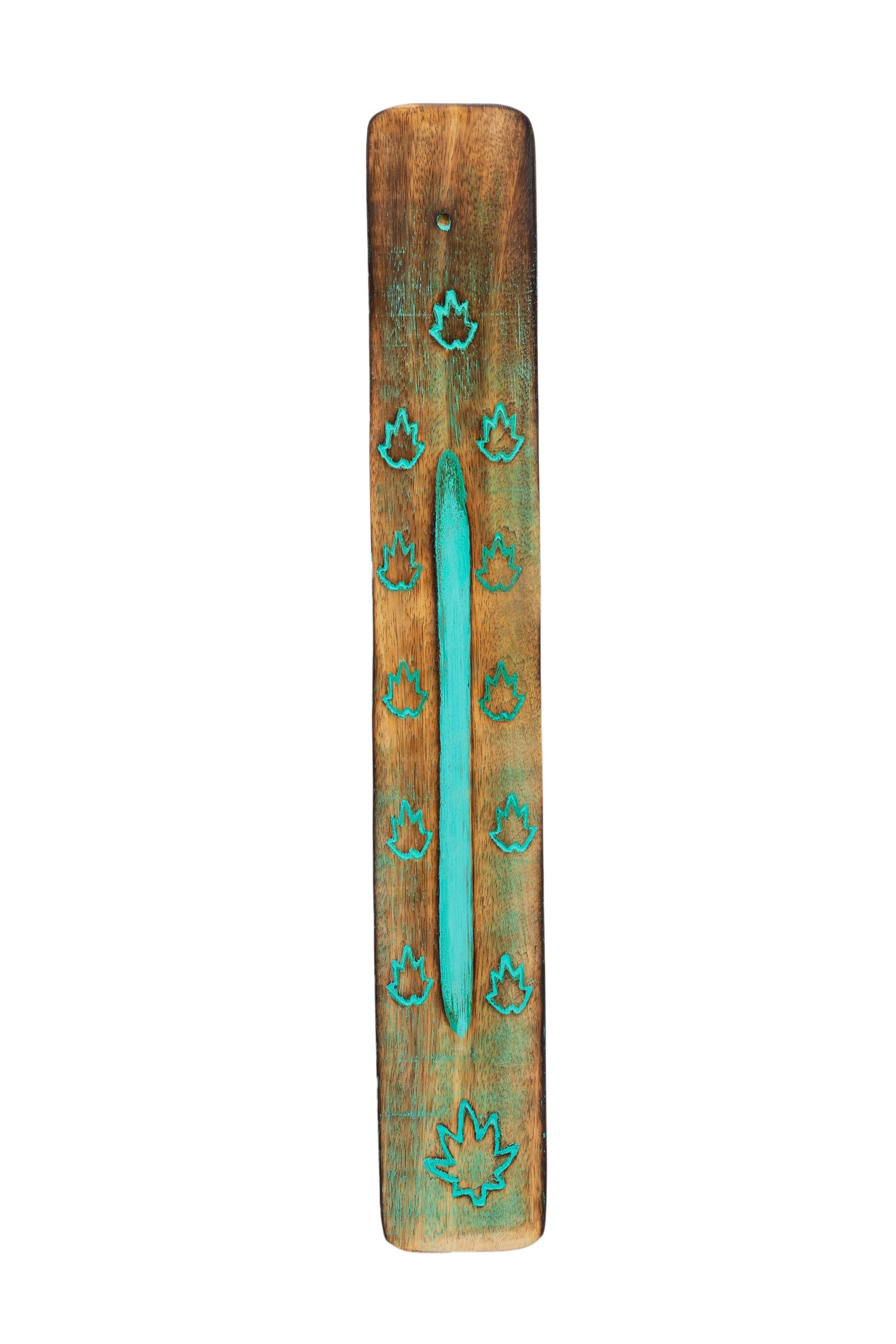 Placera din favoritrökelse i hållaren, tänd lågan och låt doften fylla rummet medan röken dansar längs träets handmålade yta. En liten stund av ro, skapad för hand.