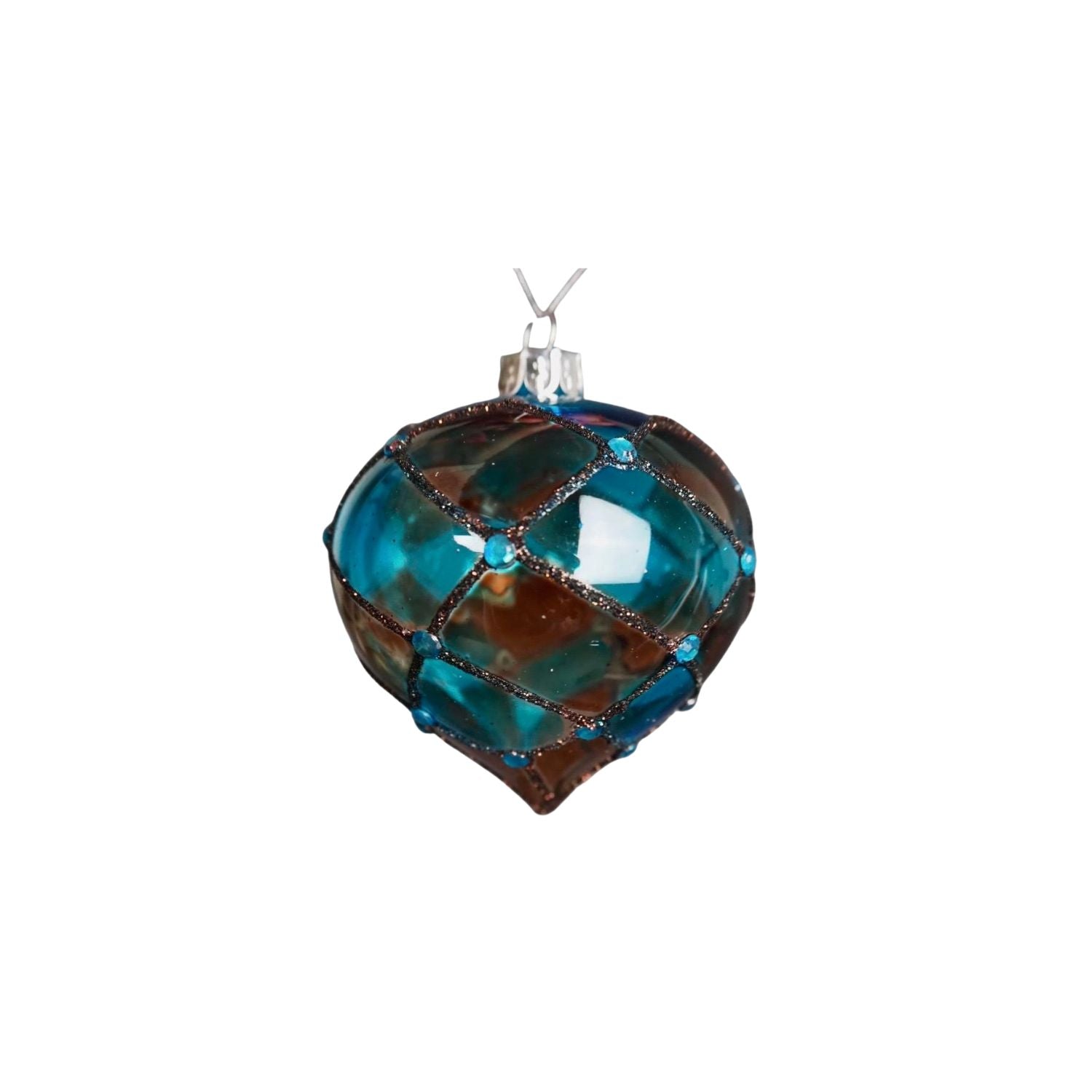 En elegant och festlig julgranskula. Den glänsande ytan och de subtila gulddetaljerna reflekterar ljuset och skapar en sofistikerad julstämning.