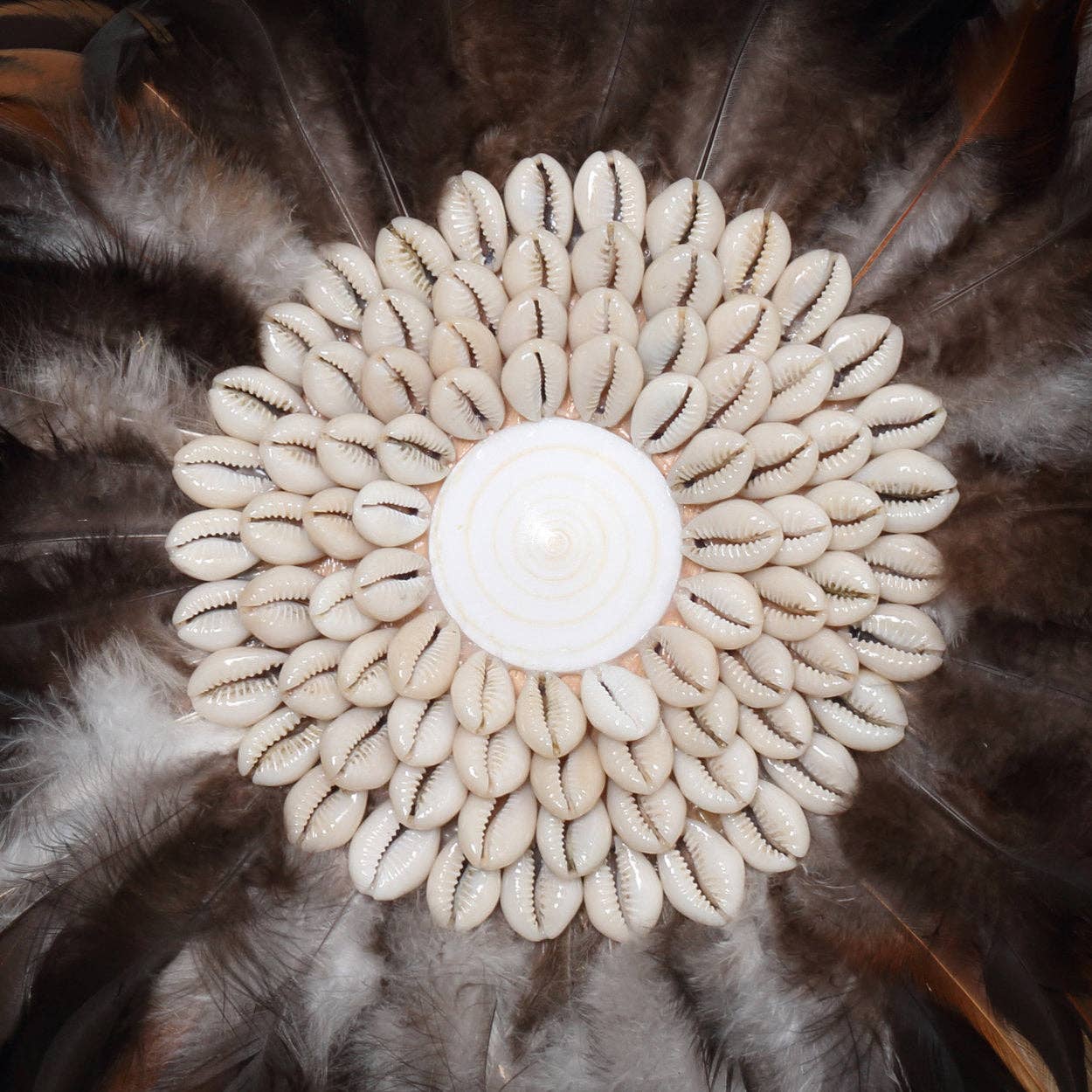 Den kustnära Juju i svartbrunt är en fantastisk handgjord väggdekoration tillverkad av naturliga fjädrar. Med rika toner av svart och brunt, ger den jordnära elegans och djärv textur till alla interiörer.