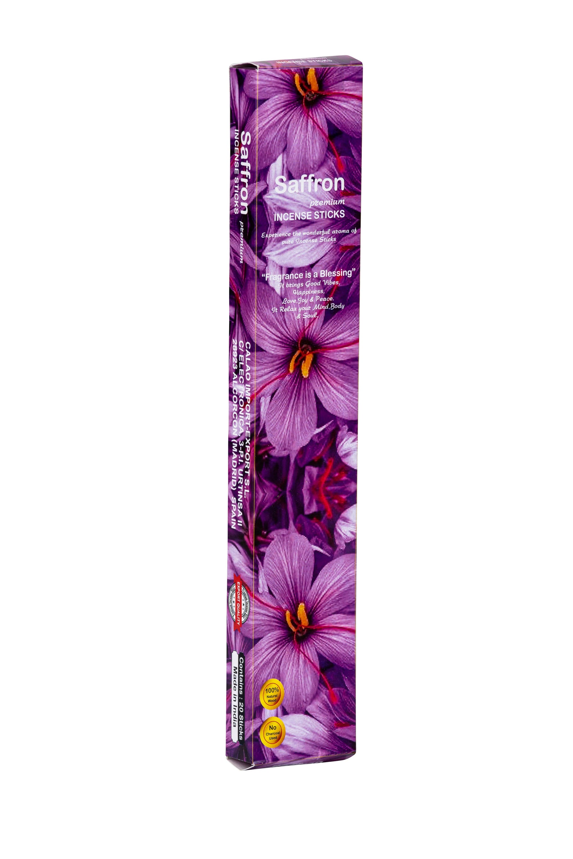 Doftande rökelsepinnar med varm, gyllene ton av saffran. En rik och mjuk doft som bjuder in till ro och stillhet.