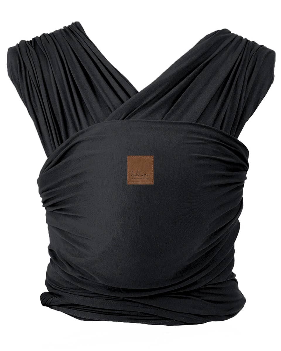 En mjuk och omslutande bärsjal i svart, designad för närhet, trygghet och komfort för både barn och förälder.
