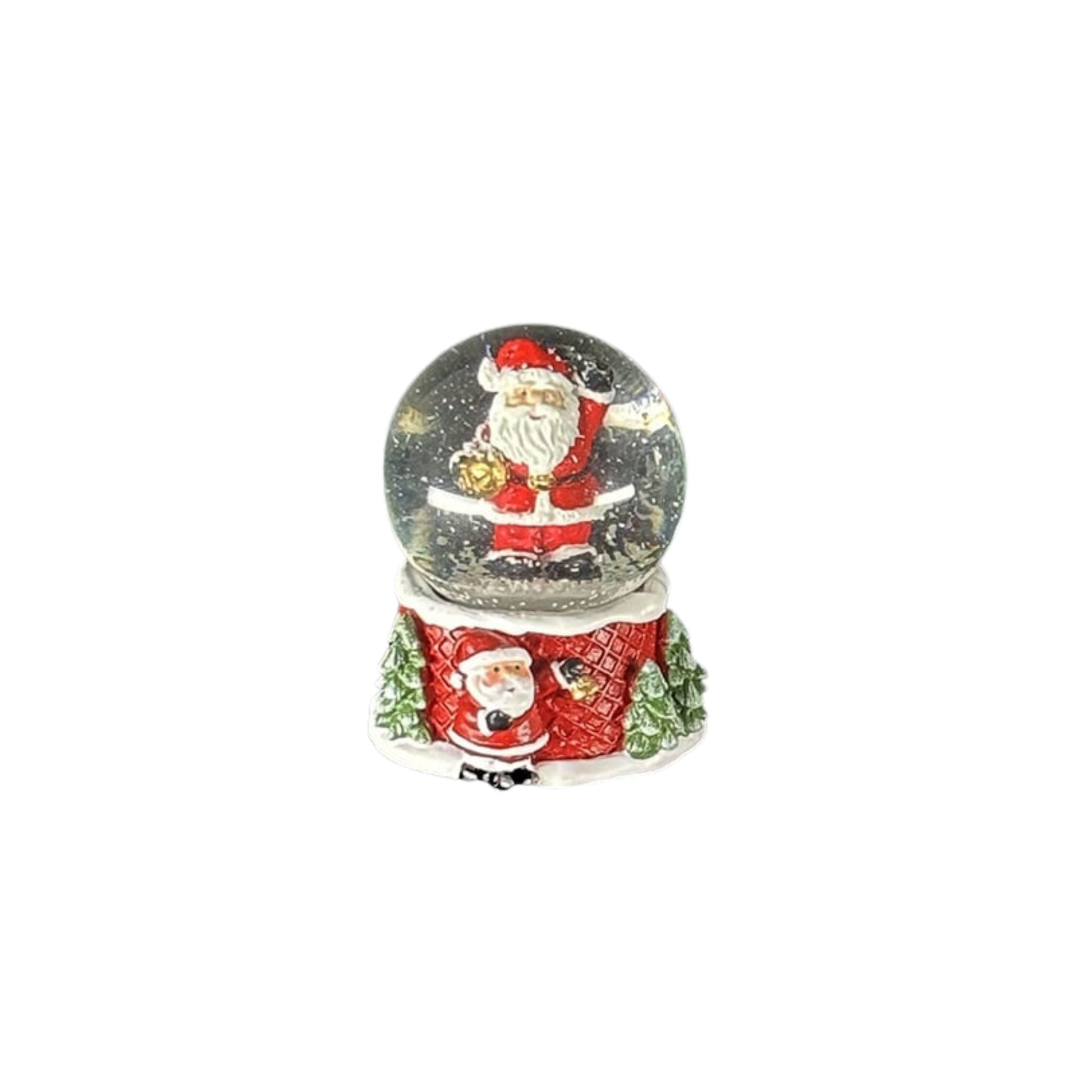 En klassisk och charmig snöglob med tomten som håller ett guldigt paket. När du skakar den faller ett glittrande snöfall som sprider omedelbar julmagi. Perfekt som liten dekoration eller gåva.