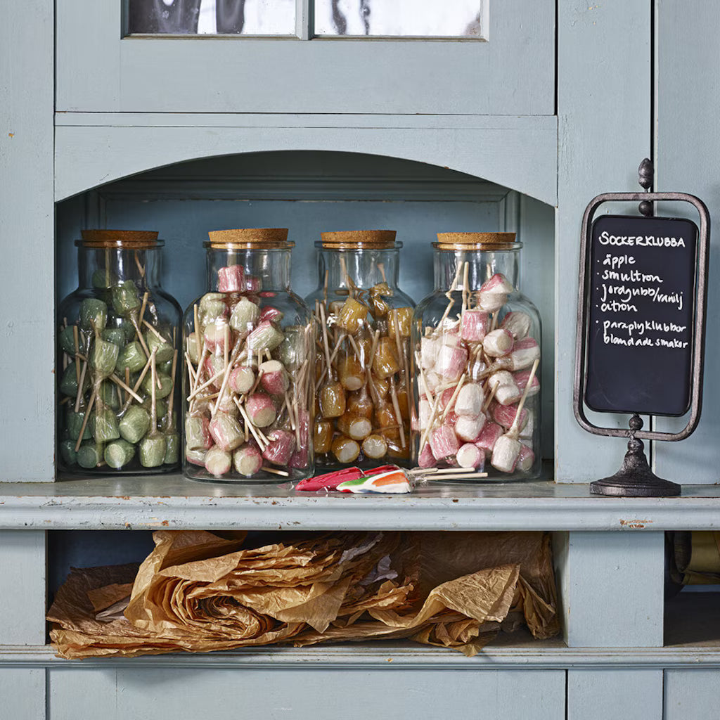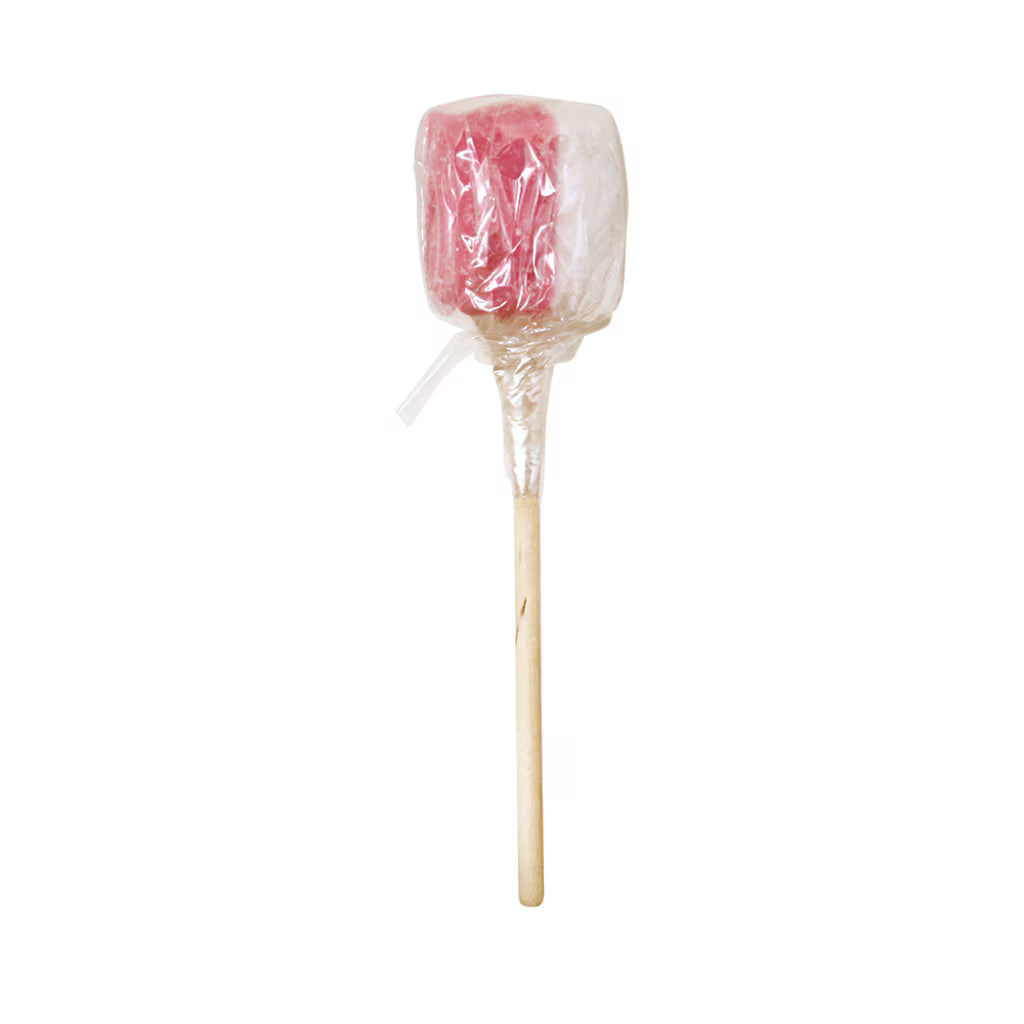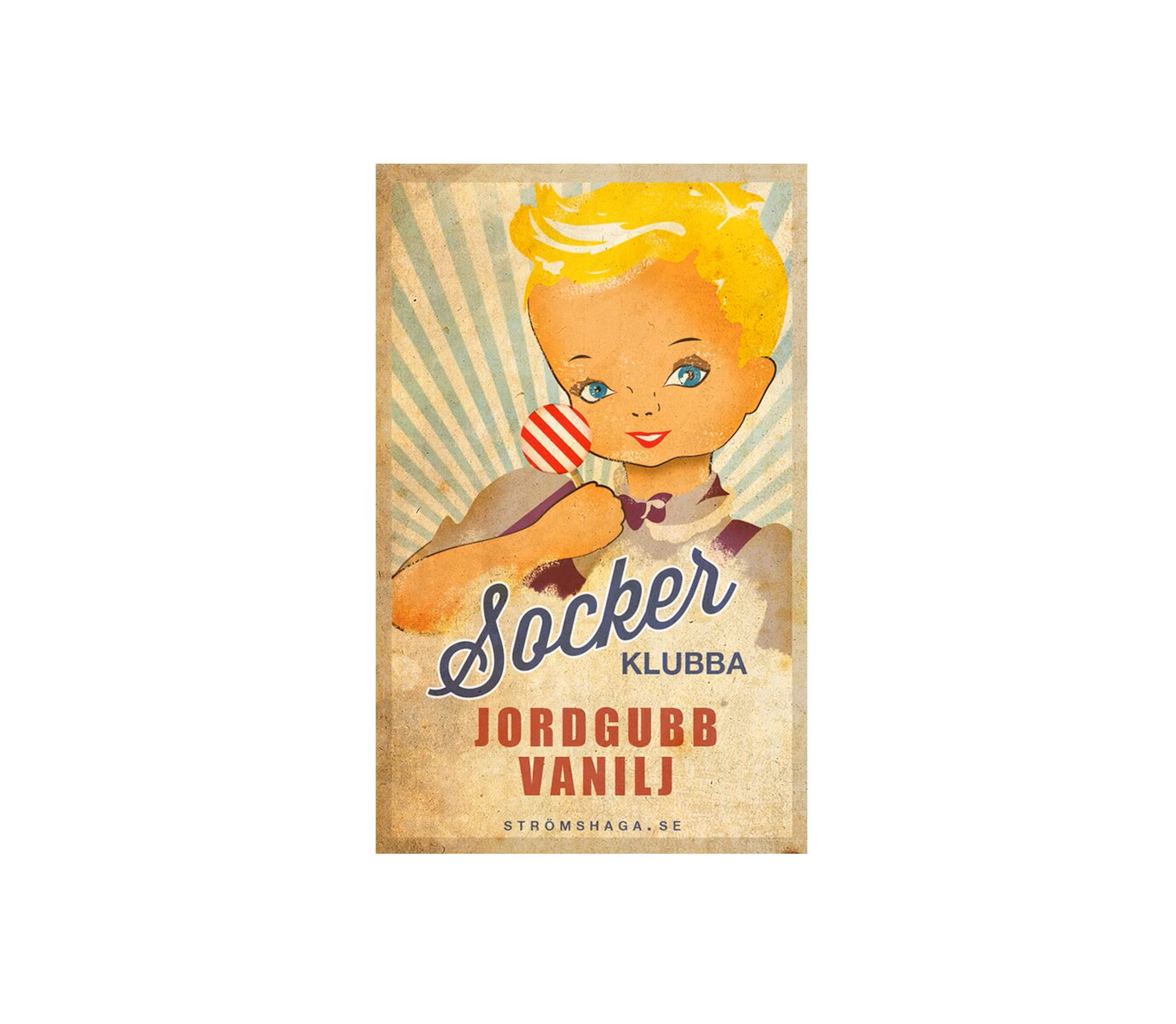 Gammaldags sockrad klubba med smak av jordgubb och vanilj. Tillverkade i Sverige.